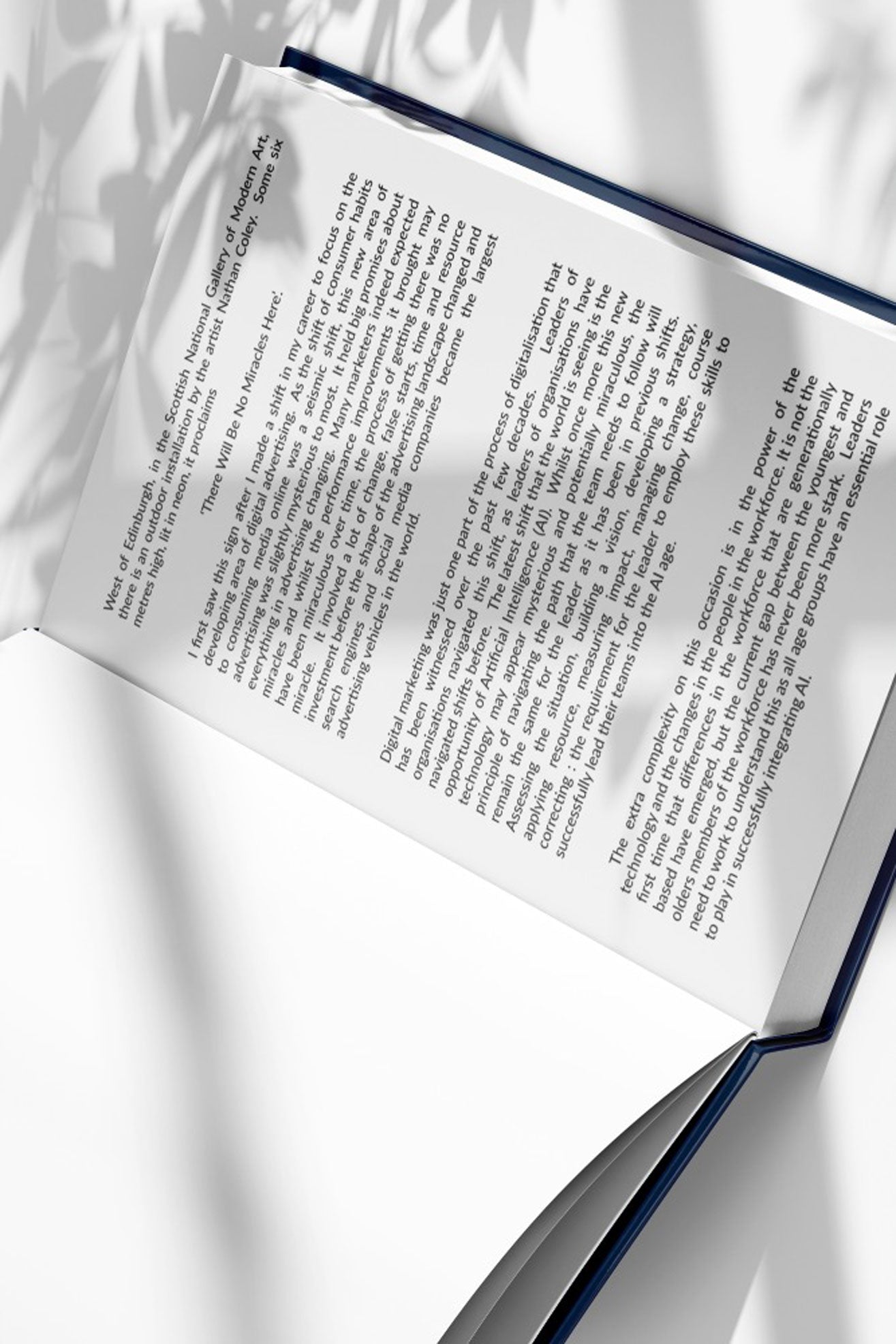 "West of Edinburgh, in the Scottish National Gallery of Modern Art, there is an outdoor installation by the artist Nathan Coley. Some six metres high, lit in neon, it proclaims: